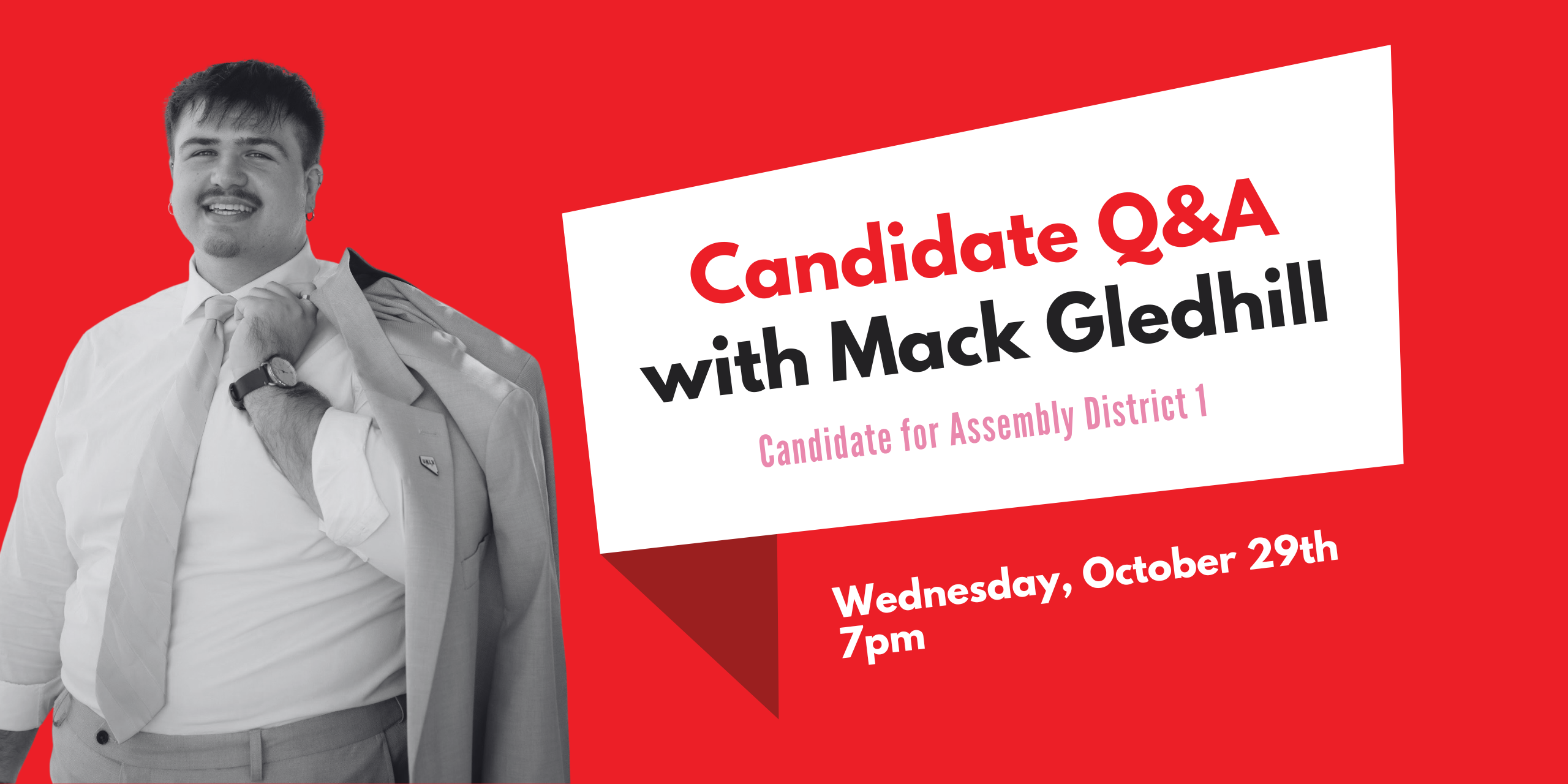 Las Vegas DSA members are invited to this Q&A event with Mack Gledhill, candidate for Assembly District 1! Mack is applying for LVDSA’s endorsement, and this will be an opportunity for members to ask questions and get to know the candidate before the endorsement vote. Members may submit questions ahead of time using this form.