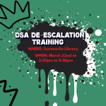 The Community Safety Working Group is hosting a free de-escalation training hosted by one of our members. If this interests you, attend and learn this valuable skill!