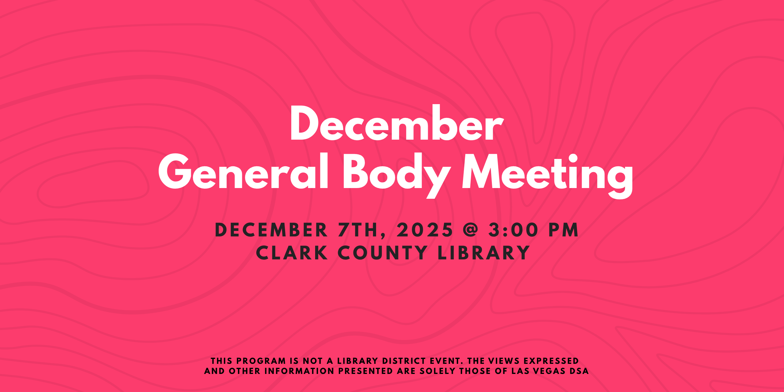 At general body meetings, members engage in business to further our chapter’s priorities and advance the interests of Las Vegas DSA.