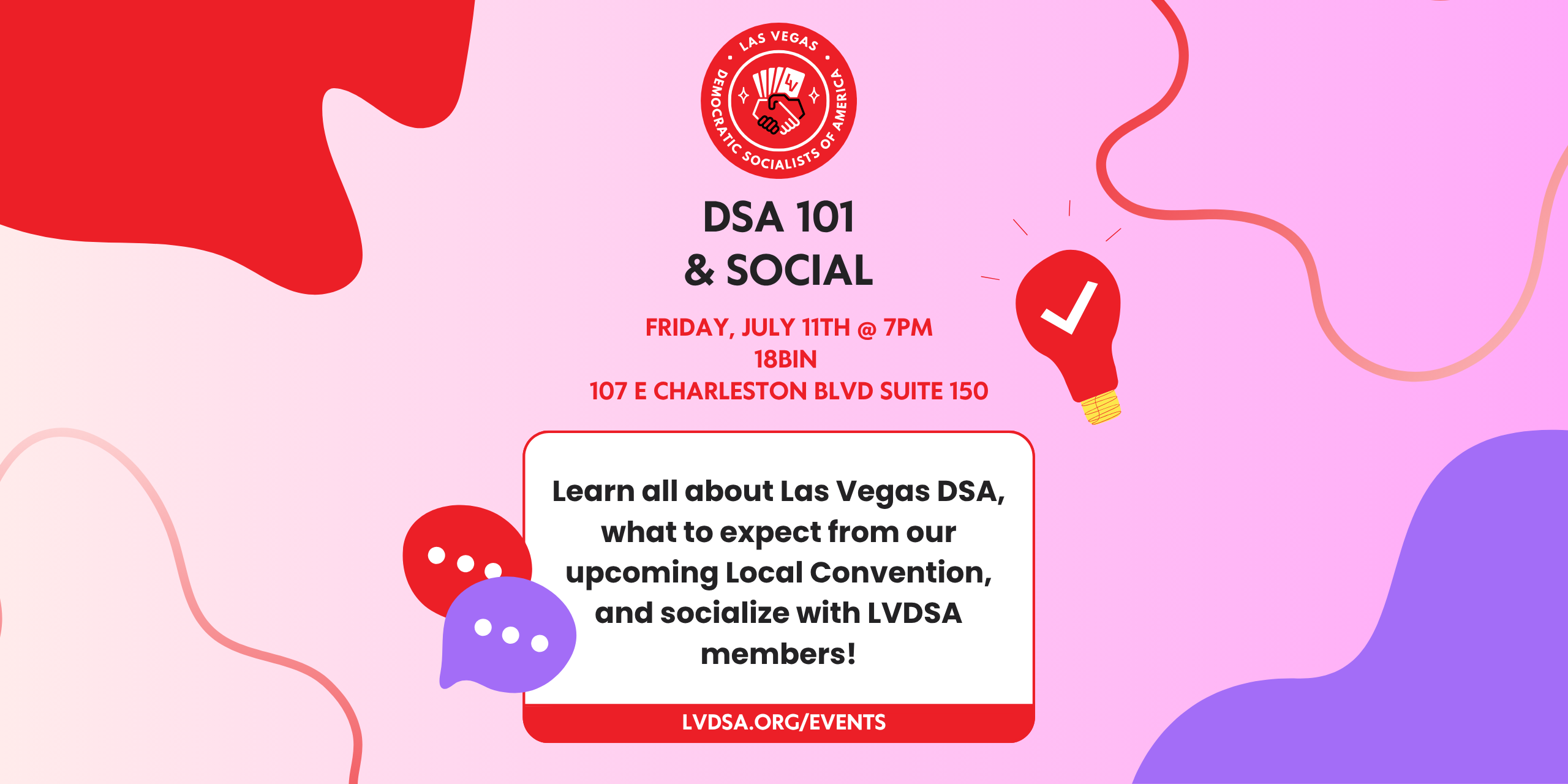Learn all about Las Vegas DSA, what to expect from our upcoming Local Convention, and socialize with LVDSA members! The 101 will start at 7pm, and the social at 7:30pm.