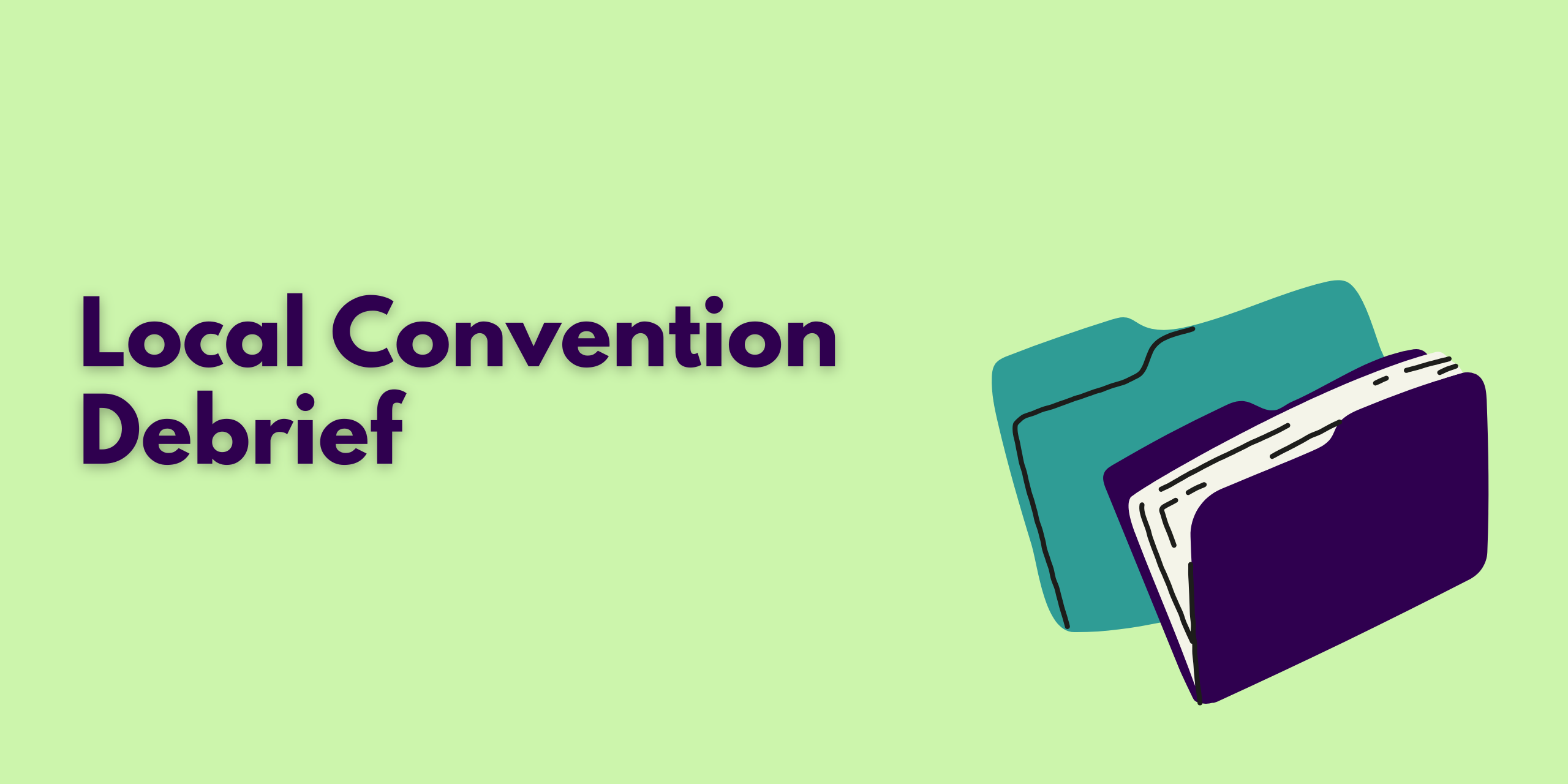 Local Convention Debrief Tuesday, July 15th @ 6:30 PM Join our convention planning team for a debrief of convention day! Register