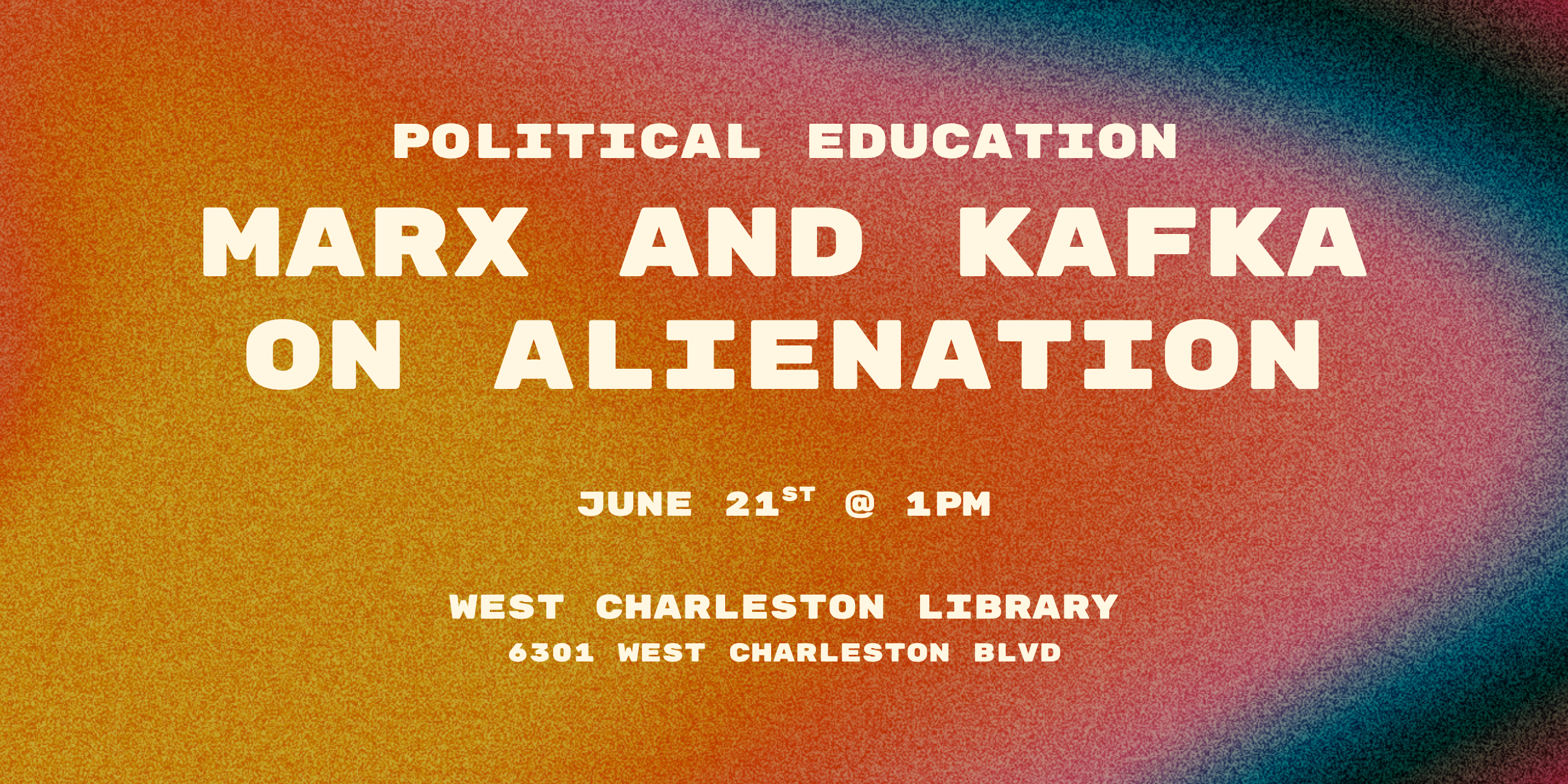 Join us for a group discussion regarding Karl Marx’s theory of alienation, using Franz Kafka’s The Metamorphosis as a way to better understand Marx’s ideas. There are PDFs of Marx’s Economic and Philosophical Manuscripts of 1844 and The Metamorphosis online; handouts with quotes will also be provided. Reading the books will not be necessary. The goal of the discussion is to better understand how we may apply Marx’s theory of alienation to our lives.